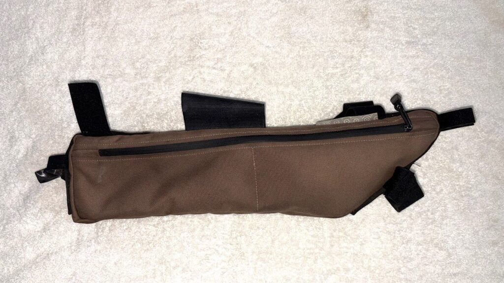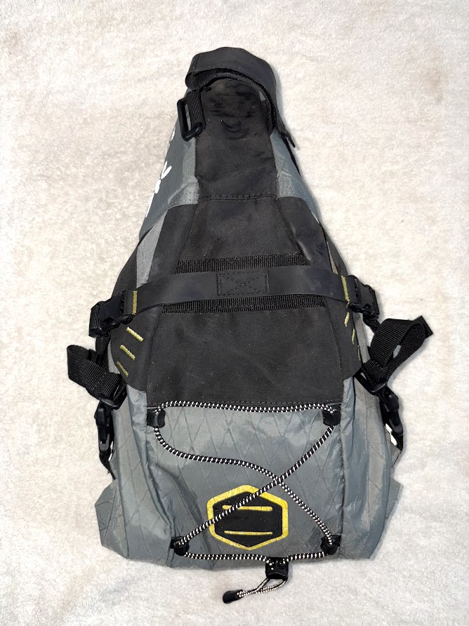 Outer Shell medium frame bag – I decided to use a frame bag to carry smaller clothing items (light full-finger glovers, gaiter and on-ride food). I ran into an issue with getting to my down tube water bottle, so I installed a side access bottle cage. My other minor gripe was the material used for the straps. It scuffed up my Ibis Hakka gravel frame.